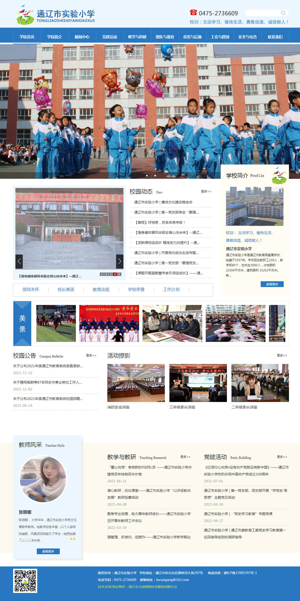 通遼市實驗小學(xué)是通遼市教育局直屬學(xué)校,始建于1957年。學(xué)校現(xiàn)在教職工220人,教學(xué)班80個,在校生3900人,占地面積22500平方米,建筑面積 15252平方米。教師隊伍中具有大專以上學(xué)歷的195人。具有研究生碩士學(xué)位畢業(yè)的9人,小學(xué)特級教師4人,高級教師57人,小學(xué)高級教師70人,小學(xué)一級教師87人。