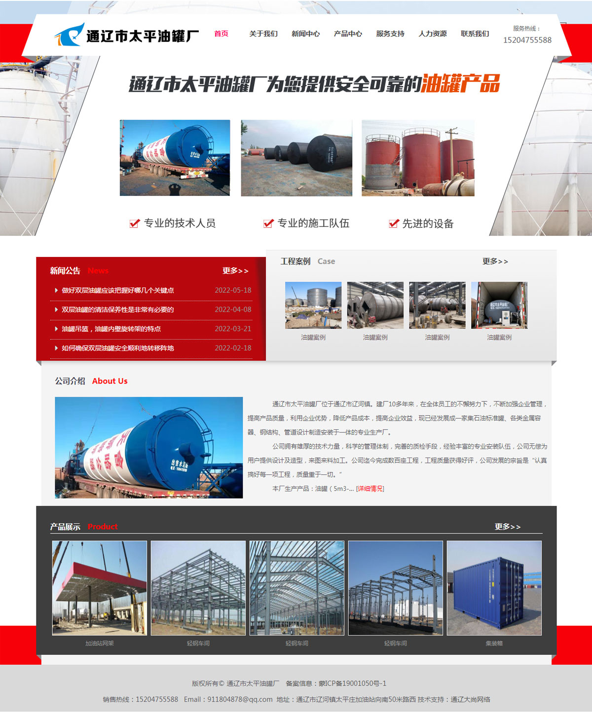 通遼市太平油罐廠位于通遼市遼河鎮(zhèn)。建廠10多年來,在全體員工的不懈努力下,不斷加強企業(yè)管理,提高產(chǎn)品質量,利用企業(yè)優(yōu)勢,降低產(chǎn)品成本,提高企業(yè)效益,現(xiàn)已經(jīng)發(fā)展成一家集石油標準罐、各類金屬容器、鋼結構、管道設計制造安裝于一體的專業(yè)生產(chǎn)廠。